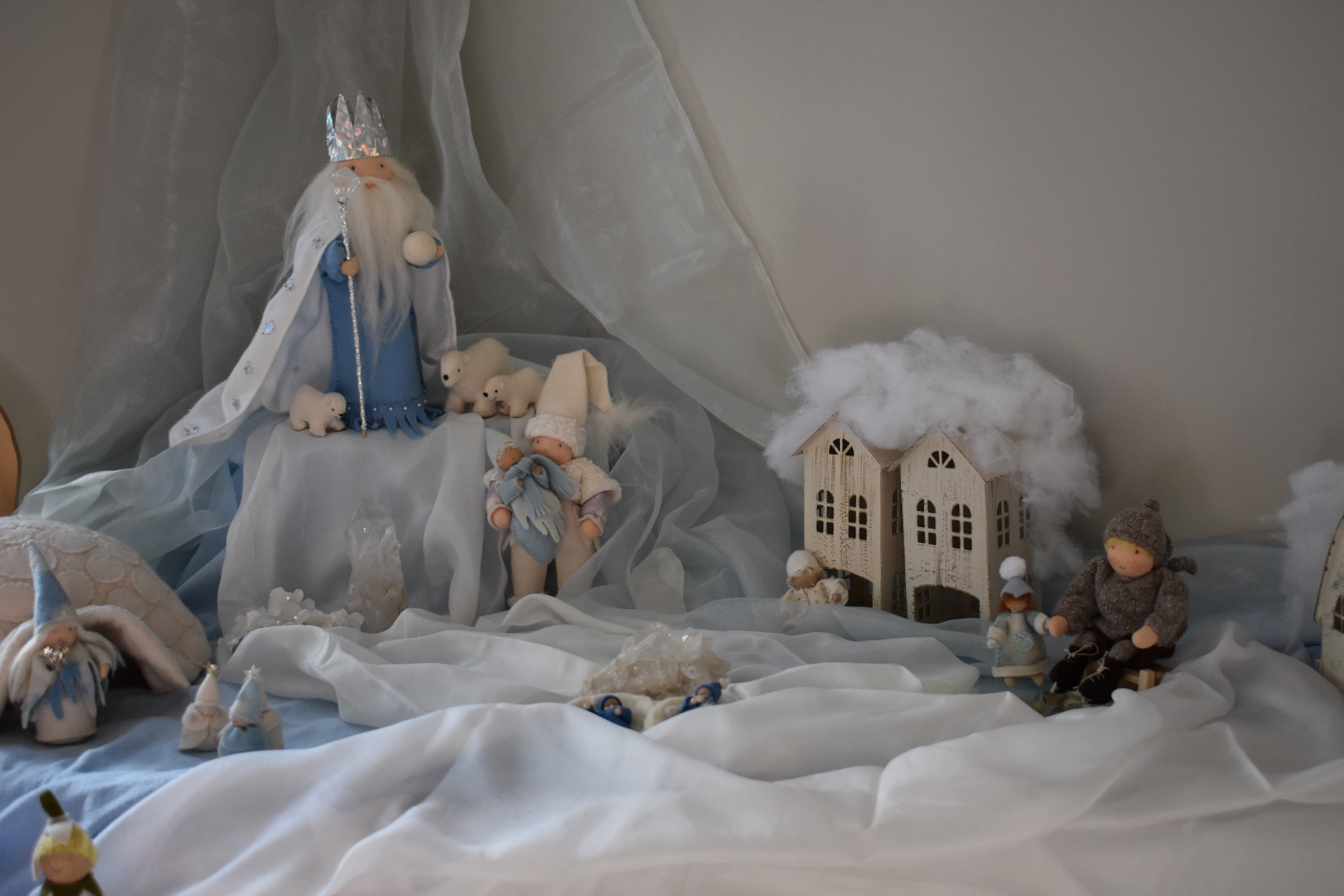 Een verhaal dat mooi past bij de wintertijd is het verhaal van Vrouw Holle. Er doen vele verhalen de ronde over Vrouw Holle, maar het verhaal van de gebroeders Grimm is toch wel het meest bekende. Vrouw Holle is een vrouw die onder de aarde, hoog op een berg woont en als zij met haar kussens en beddengoed schudt, dan gaat het op aarde sneeuwen. Vrouw Holle beloont goedheid en ijver met goud. Luiheid en onwil worden beloont met zwarte pek.